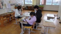 いずみ学級で、ピンポン球を使って学級の迷路を何秒で回れるかというゲームを行っていました。ゲームの内容はすべていずみ学級の児童が考えたそうです。