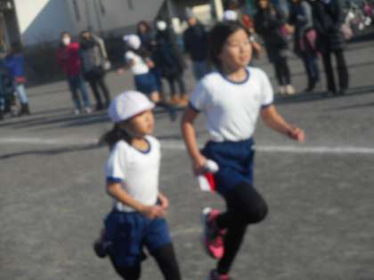 3年生の次は4年生女子でした。4年生は7分間元気いっぱい走りました。