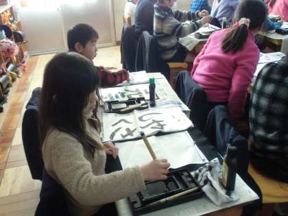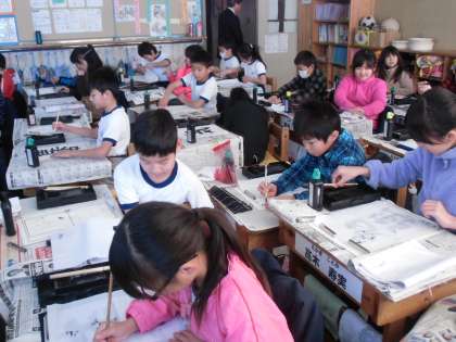 3年2組は、学級活動の時間でした。今年の自分の目当てを、毛筆で書き表していました。どの子も真剣に取り組んでいました。