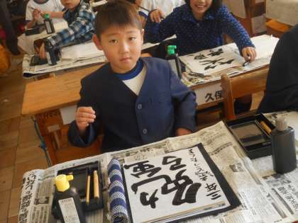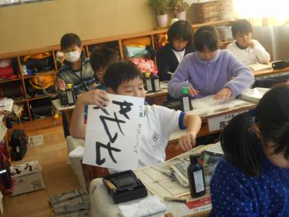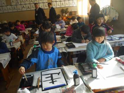 3年生のクラスでは、一年の計は元旦にあり!ということばを受けて、自分の目標を習字で表していました。それぞれが思い思いのことばを筆で書いていました。