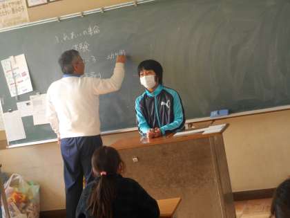 5年生は総合的な学習の時間のふれあいの輪を使って、保育園や幼稚園を訪問した時の報告をしあっていました。お互いに興味をもって聞いていました。