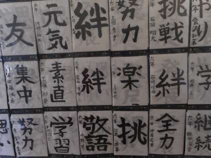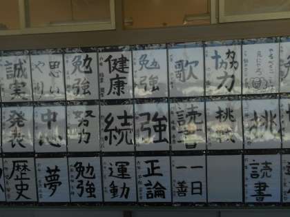 6年生のクラスには、新しい年の決意が習字で掲示されています。その児童ならではの決意が感じられます。