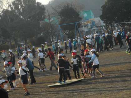 今朝は富士山に少し雲がかかっていました。たいへん多くの子どもたちが外へ出て、なわとびやマラソンに取り組んでおり、とてもすがすがしかったです。