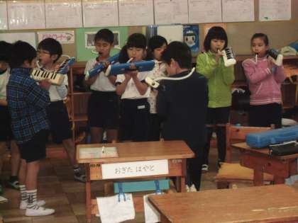 2年3組は、音楽の授業でした。「山のポルカ」を鍵盤ハーモニカで一生懸命吹いていました。発表会が楽しみです。