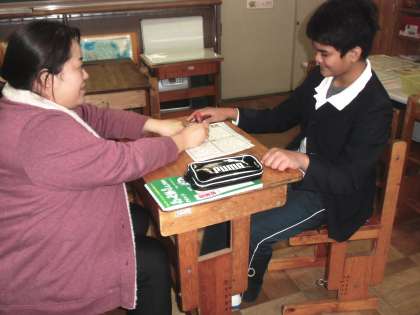 めぐみ教室では、外国籍児童担当教諭が漢字の読みの学習をしていました。