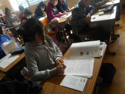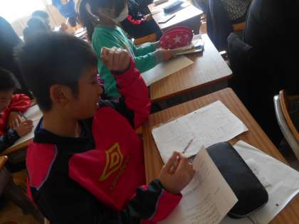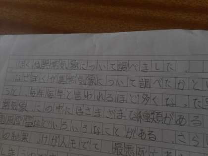 6年生のクラスでは、卒業レポートを書いていました。一人10枚書いて、それをクラスで発表する予定になっているそうです。