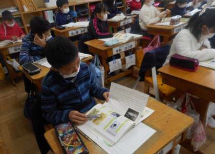 4年生の国語では、ユニバーサルデザインの考え方について、教科書に書かれている箇所に線を引いて、みんなで確認をしていました。