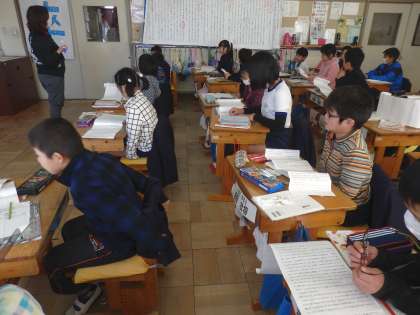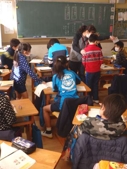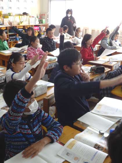 3年1組、2組の国語の授業の様子、3年3組の社会の授業の様子です。どの学級も子供と子供、教師と子供の対話による学びを大切にしていました。