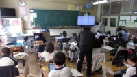 新たなALTを迎え入れ、外国語活動の授業が始まりました。5年生の教室では、Lesson4「好きな物を伝えよう」、「Who am Iクイズをしよう!」の授業が進められていました。果物の英単語を覚えながら楽しく活動を進めていました。