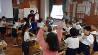 下校時に校舎内で爽やかなあいさつをしている児童の様子です。明日も元気に登校しましょう!