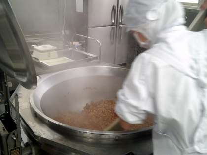 大きな釜等を使って、食材を炒めたり、茹でたりします。