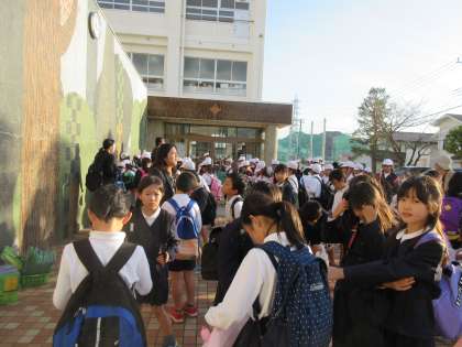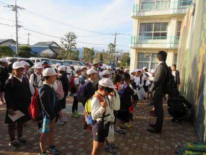 今、静岡市から4年生が社会科見学を終え、学校に到着しました。