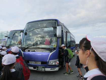 7時30分に5年生が社会科見学に向けて出発しました。見学先は「明治製菓東海工場」「SBS静岡放送」です。昼食は大浜公園でお弁当を食べます。学校には16時に到着する予定です。