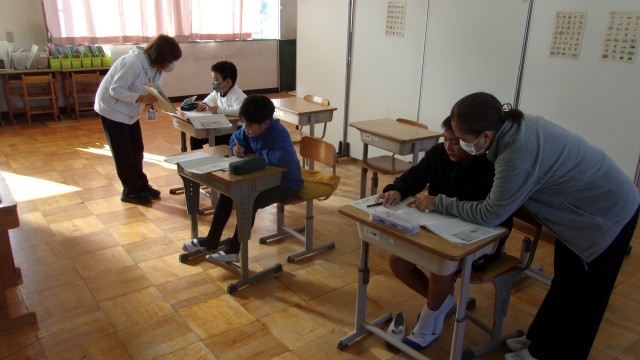 1組と3組は国語を、2組では音楽を行いました(3組は図書館で本を借りました)。国語では漢字の練習をしたり、しりとり遊びを通じてひらがなの定着を図ったりするなど、「個に応じた学習」を進めていました。音楽...