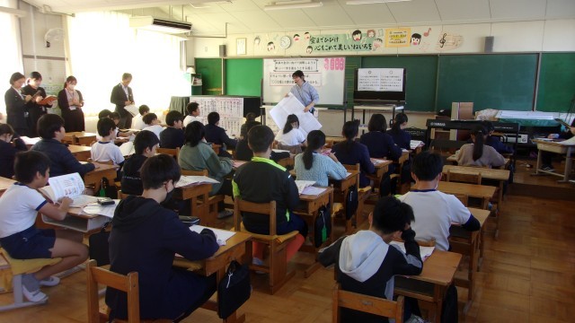 本日の研修の中心授業(3校時)の様子を紹介します。5年2組の音楽の授業です。全職員が参観する授業だったので、児童も緊張したと思いますが、表現を工夫して歌うのにどこに気をつければ良いか、各グループで熱...