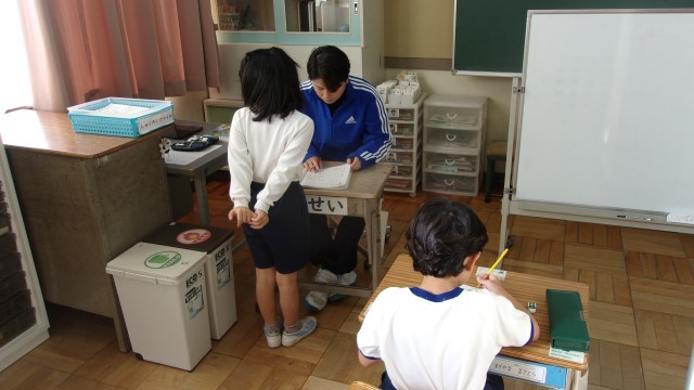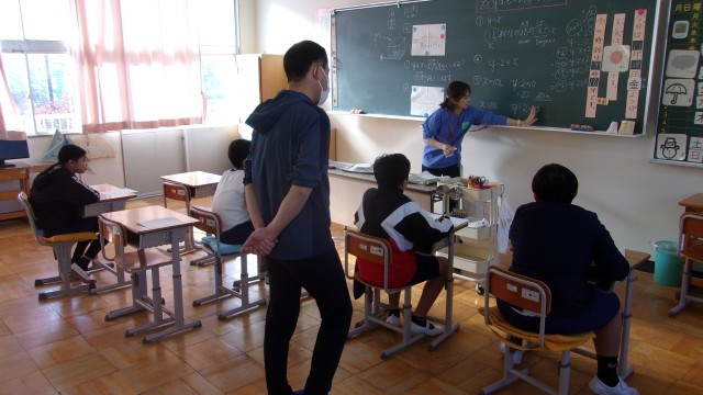 6年生の算数で「比例」を勉強しました。学習のまとめで授業者が「xが2倍、3倍・・・となる時に、yも2倍、3倍・・・となる」と確認し、その上で外国語支援員からも母語で説明をしてもらいました。子供たちから...
