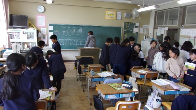 3校時の授業は、1組が算数、2組が国語です。算数では「ともなって変わる量」を学習しています。「正方形を階段状に積み上げていった場合、段の数が増えると周りの長さはどうなるか?」という学習課題を考えまし...