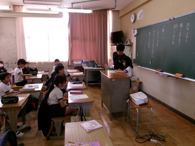 2校時の授業は、全てのクラスが国語です。いずみ1では自己紹介カードを書きました。2つのグループに分かれ、担任の先生と支援員さんから説明を受けて熱心に取り組んでいました。いずみ2では、「自分の名前をてい...