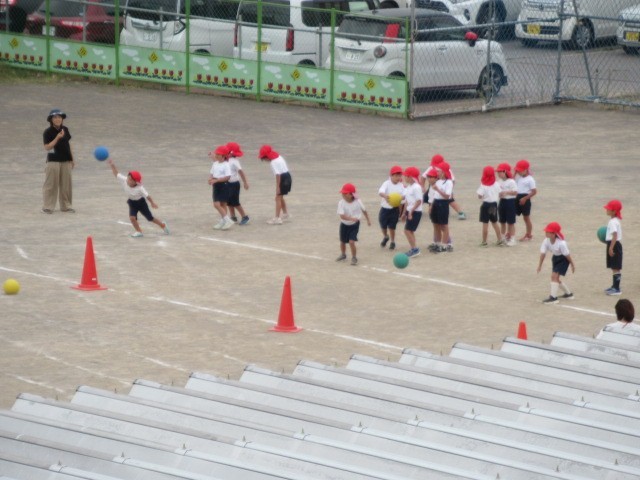 1年生の体育の授業の様子です。10月になって気温がだいぶ涼しくなってきたので、運動場での体育もできるようになりました。