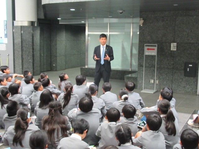 ホールでは、沼津市出身の衆議院議員、勝俣孝明議員が国会についていろいろな説明をしてくれました。