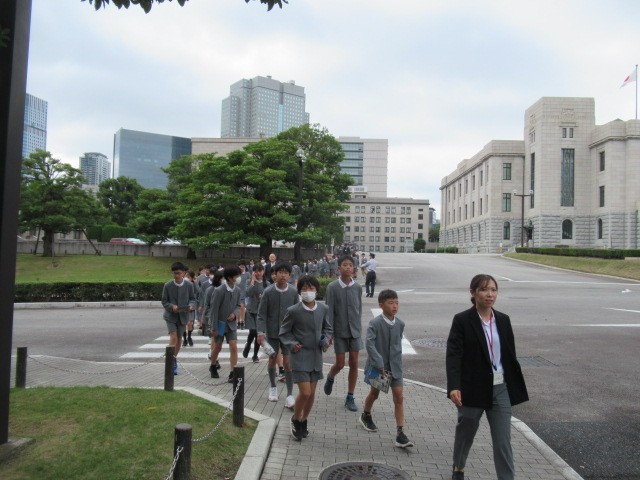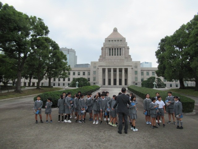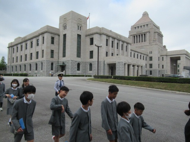 国会議事堂内の見学を終えて外に出てきました。議事堂の外観を見ることができます。この後、国会議事堂をバックに集合写真を撮りました。