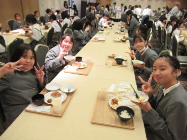 夕食の様子はここまでです。最後にみんなで「ごちそうさま」をして、終わりました。が、3枚目の写真は、テーブルから出たままになっている椅子をしまう子供たちの様子です。担任から頼まれたわけでもなく、自主的にこのような行動をとることができる南小の6年生って本当に素敵です。