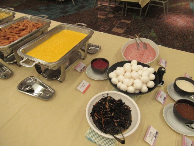 まずは、朝食の様子です。写真は、ホテルが用意してくれた朝食のメニューです。朝からいろいろなものがあって豪華な食事でした。