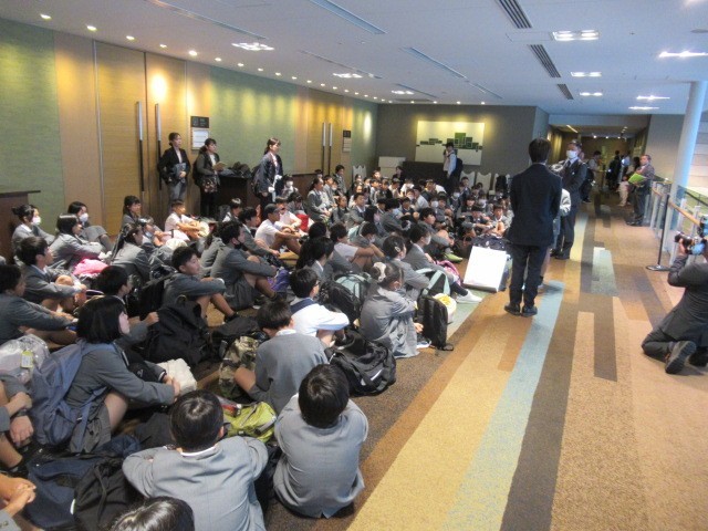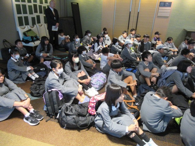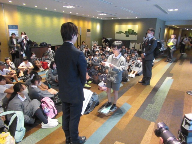 ホテルを出発する前の「退館式」の様子です。実行委員の代表の児童が、ホテルの方にお礼の気持ちを伝えました。とても立派な態度で、内容も素敵な内容で感心しました。
