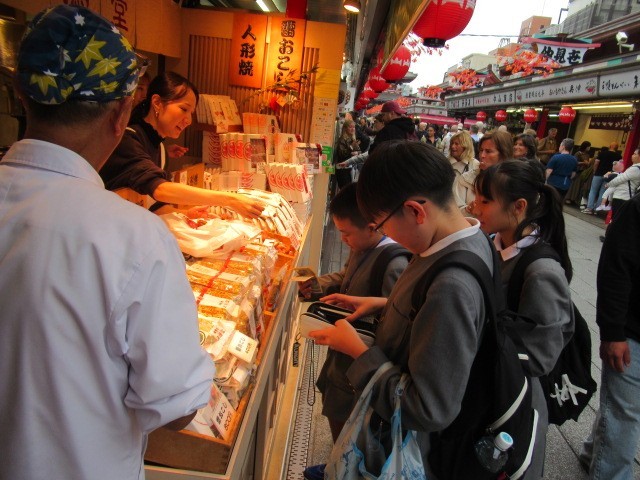 いよいよ最後の見学地、浅草の様子です。今回上野から浅草への子供たちだけでの電車移動ということで、子供たちもドキドキだったことと思いますが、われわれ教員もドキドキしながらではありましたが、ポイントポイントに教員を配置し、子供たちが困らないように配慮してきました。
