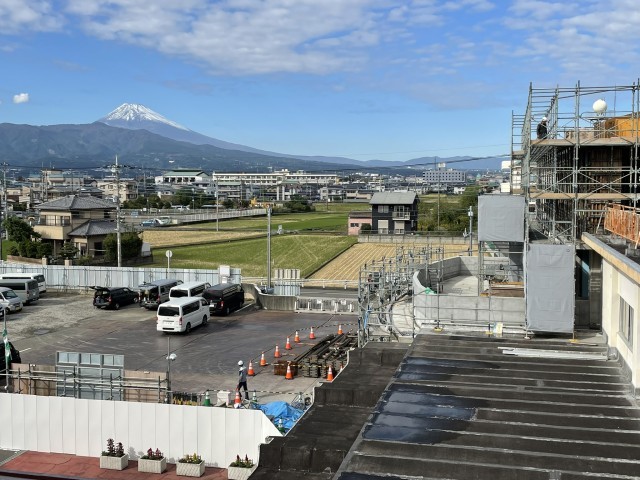 今日は富士山が初冠雪で、久しぶりに富士山らしい姿を見せてくれました。今年の夏に日本にやってきたマイケル先生は、雪の降った富士山を初めて見たそうで、富士山を見ながら出勤してきたと嬉しそうに話してくれました。(写真は南校舎3階の廊下から撮った今日の富士山です。北校舎もかなりできてきました。)