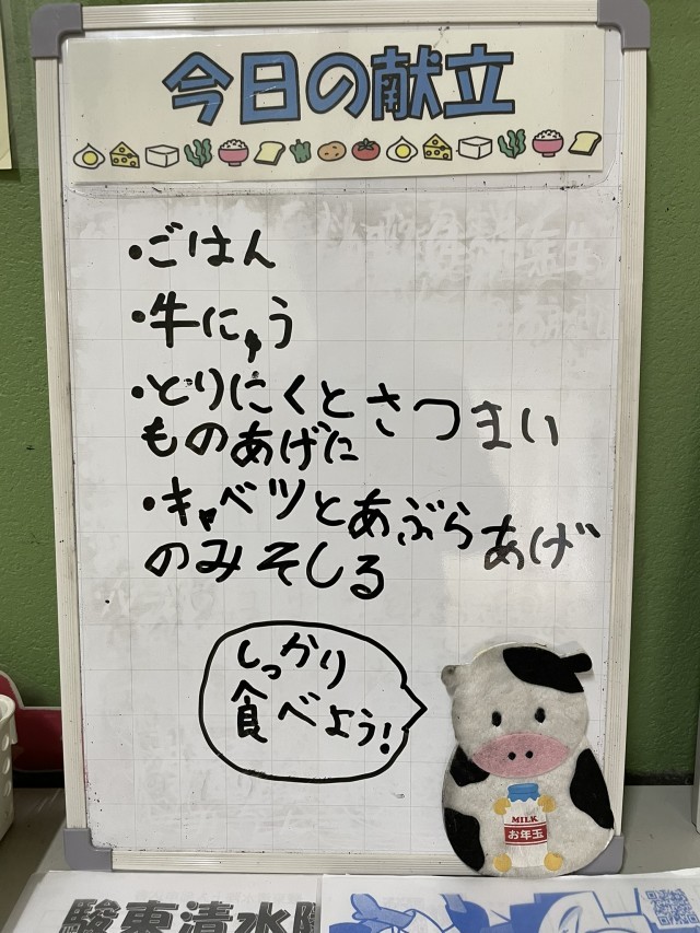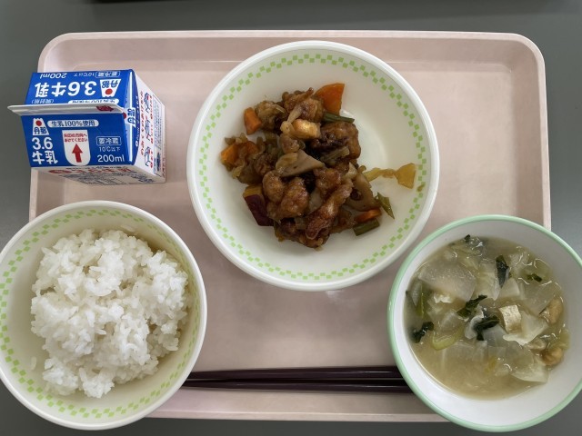 今日の給食は、鶏肉とさつまいもの揚げ煮です。毎日栄養教諭の先生が食育の一つとして食材のクイズを出してくれます。その説明の中で、さつまいもは収穫してしばらくねかせるとでんぷんが糖になり、おいしくなるのだそうです。1年生のさつまいもの収穫もそろそろです。どんなおいもが育っているか楽しみです。