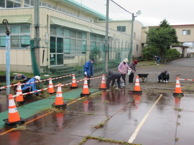 PTA奉仕作業と同時進行で、清水町シニアクラブ連合会の南小学校学区のみなさまが、運動場の草取り作業を行ってくださいました。毎年、「社会奉仕の日」ということで計画してくださり、学校の環境整備をしてくださっています。