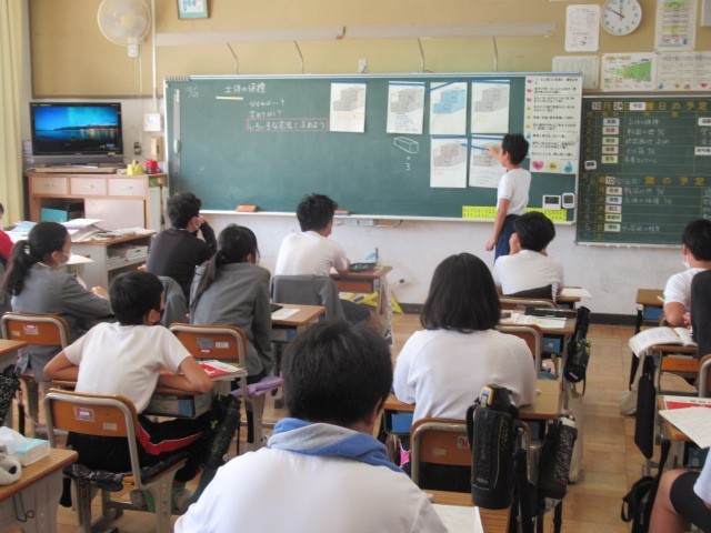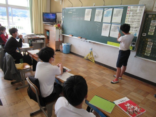 黒板の前に出て、自分の考え方を発表している姿とそれを自分の席でしっかりと聞いている姿が、6年生らしさを感じました。自分から学ぼうとする姿勢がとても素敵ですね。