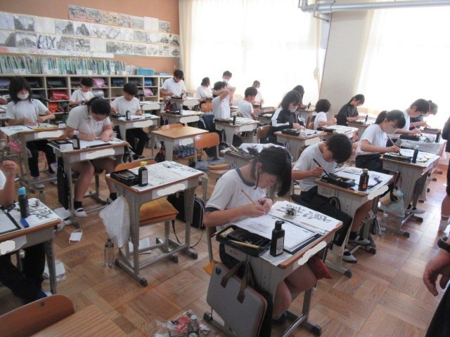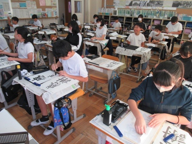 6年生の書写の授業の様子です。席書コンクールに向けて練習をしているところでした。さすが6年生、「感謝」というかなり難しい字に挑戦です。