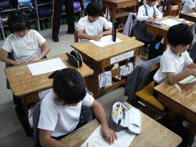 国語の授業です。先生が出した「ことばあてクイズ」の答え「アイスクリーム」「ラーメン」「おすし」「おせんべい」「サンタクロース」・・・。よく見ると、ひらがなの仲間とかたかなの仲間に分かれます。それってなんでだろう?と考えていくと、外国から来た言葉か日本で生まれた言葉かによって使い分けていることに気づきました。「なんでかたかなは、かたかななのに、かたかなでカタカナって書かないの?」「かたかなは日本の文字だからじゃない?」新しい疑問が生まれ、また新しい答えを探し出す。そんな素敵な姿も見られた1時間でした。