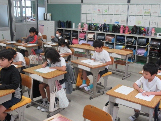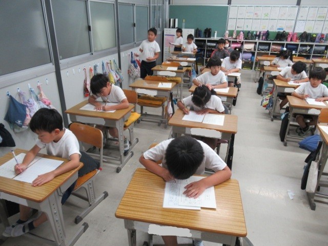 2年生の書写の授業の様子です。2年生は、鉛筆で席書コンクールに取り組みます。