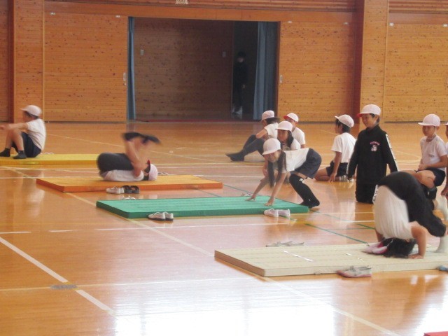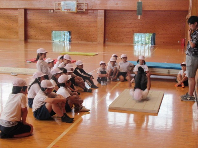 とても上手に回転し、最後はピシッと立つことができる子もいて、みんなの前でお手本としてやって見せてくれました。