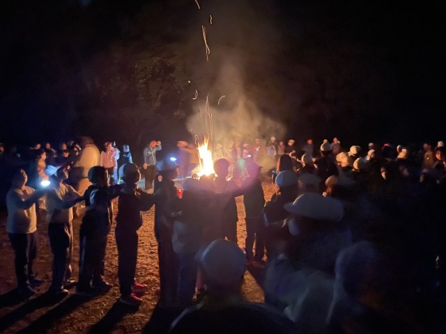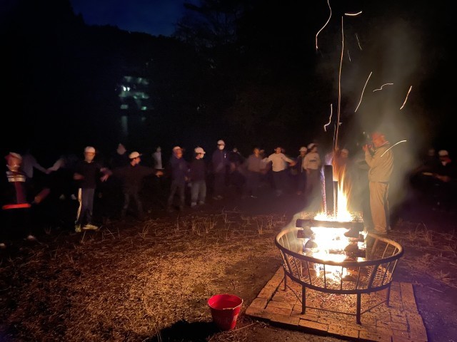 火を囲んで、レクリエーションやフォークダンス。おおいに盛り上がりました。