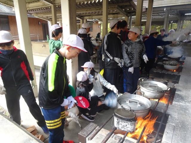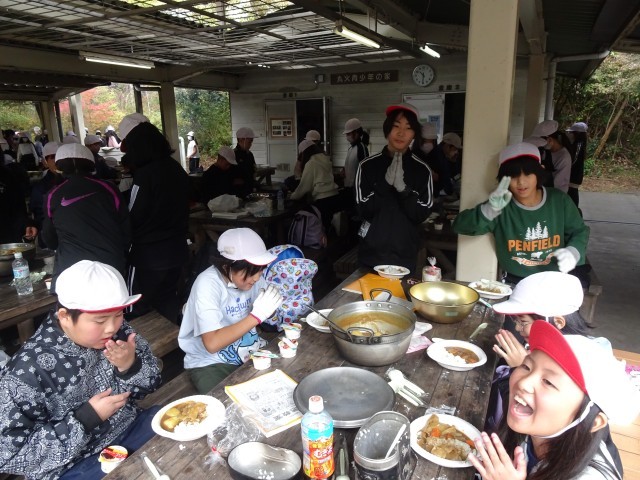 そして、いよいよカレー作りです。火を起こす経験も、日常ではなかなかないですよね。火のありがたさと怖さ、どちらも感じてくれたらいいなと思います。「じゃがいもが柔らかくなったらカレー粉を入れよう!」「飯ごうの水は、このくらいでいいかな?」ちょっとご飯が硬くなってしまう班が多かったようですが、これも学びですね。仲間と協力し、自分たちで作ったカレーは特別です。当たり前のようにごはんがおいしく炊ける炊飯器のすごさや、毎日ご飯を作ってもらえることへの感謝を感じている子もいました。