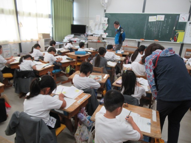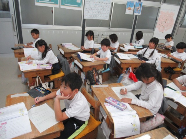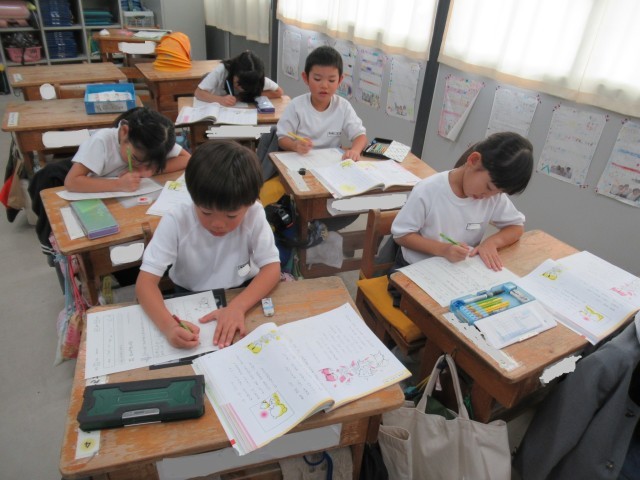 1年生の道徳の授業です。「ひとつぼし」という題名のお話を読んで、登場人物の良いところを見つけていくというものでした。どの子もお話をもう一度読み返しながら、一生懸命良い所見つけをしていました。1年生も後半に入り、文章や自分の考えたことを上手に書くことができる子がたくさん見られました。1年生の成長を感じます。