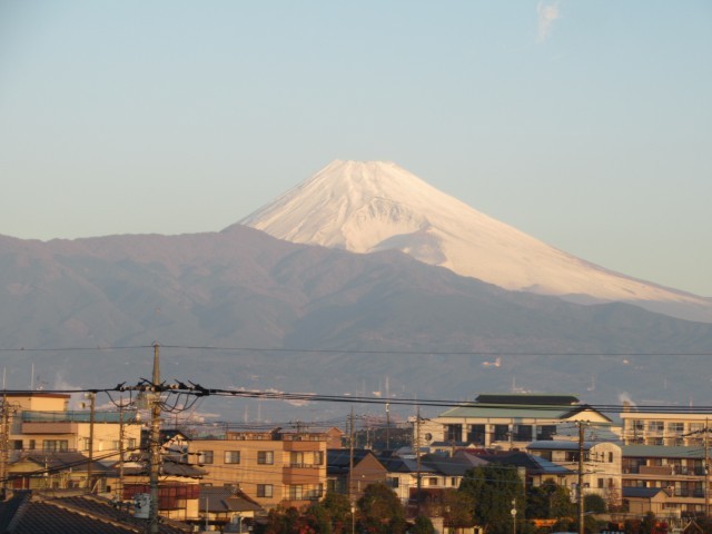 昨日の雨は、富士山では雪になっていたようで、朝富士山を見たら全体が真っ白になっていました。写真は、朝7時ごろの様子です。朝日を浴びたきれいな富士山を南校舎3階から思わず撮ってしまいました。
