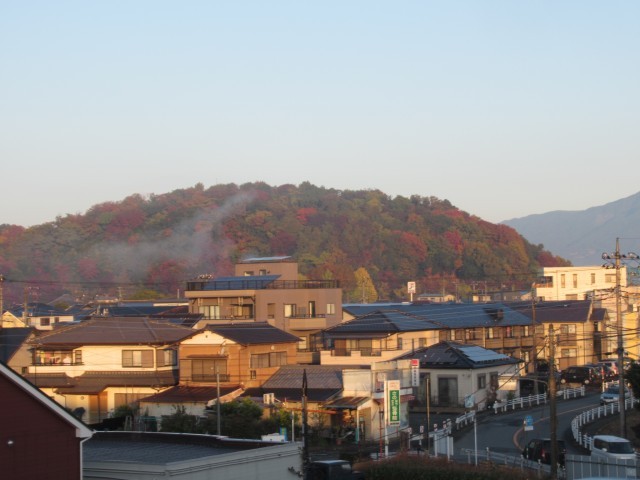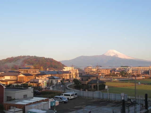 そして、手前には、きれいに紅葉している本城山も見えました。雪景色の富士山と紅葉している本城山の共演に、朝から気持ちがよくなりました。