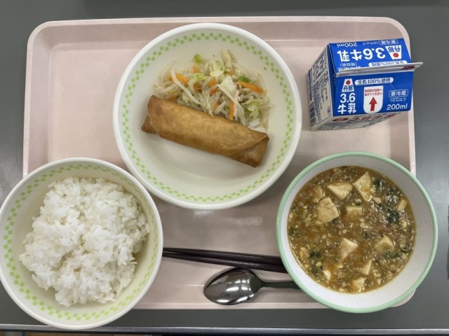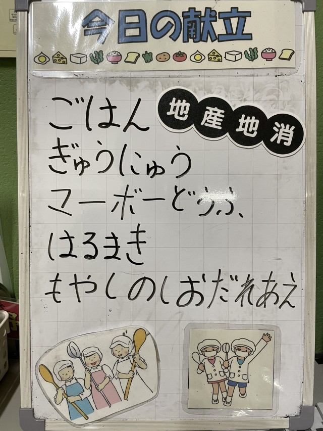 今日の給食は麻婆豆腐でした。とろみのある食事は、あったまります。ご飯と睡眠をしっかりとり、元気に過ごせるといいですね。