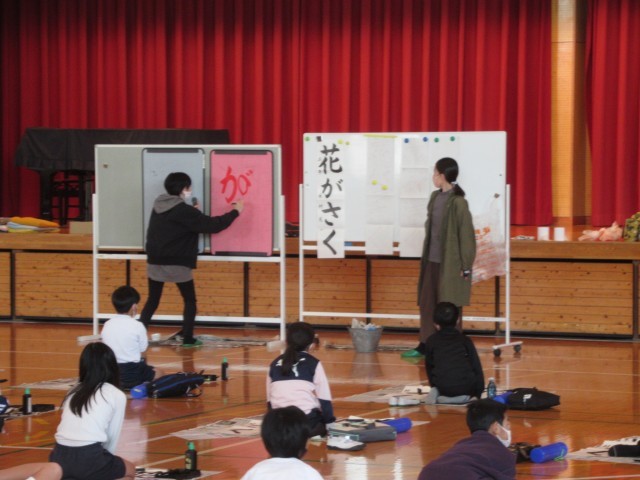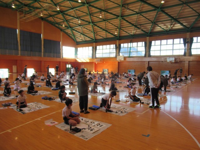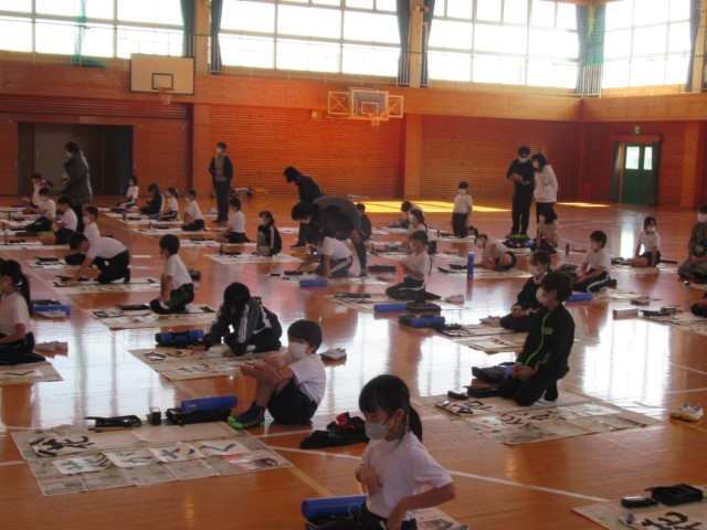 今日は、3年生が書き初めの練習をしました。書き初めの文字の書き方を指導してくれるボランティアさんや子供たちの練習を見守り支援してくれるボランティアの方々がたくさん来てくださいました。3年生は、書き初めに取り組むのが初めての子が多いので、ていねいに見てもらえてとても良かったと思います。