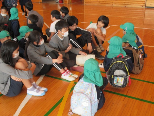 入学後の4月からペア学年となる5年生が、エスコート役を務めました。自分たちよりもかなり小さい園児たちに、とてもやさしく接する5年生の姿が微笑ましかったです。