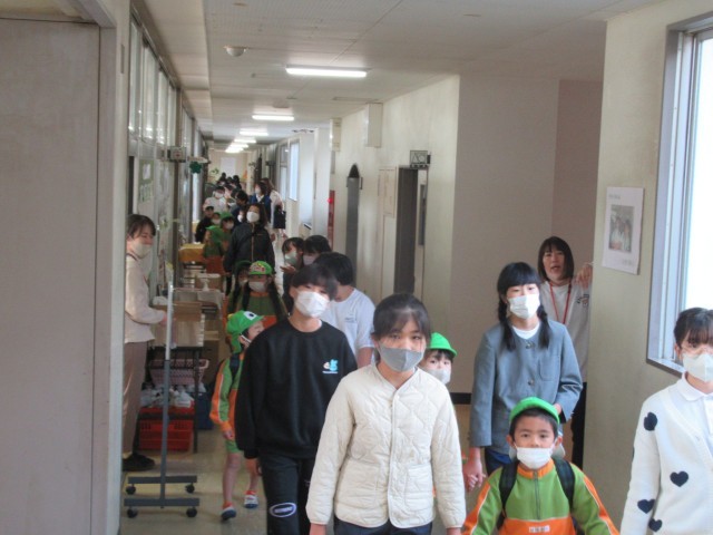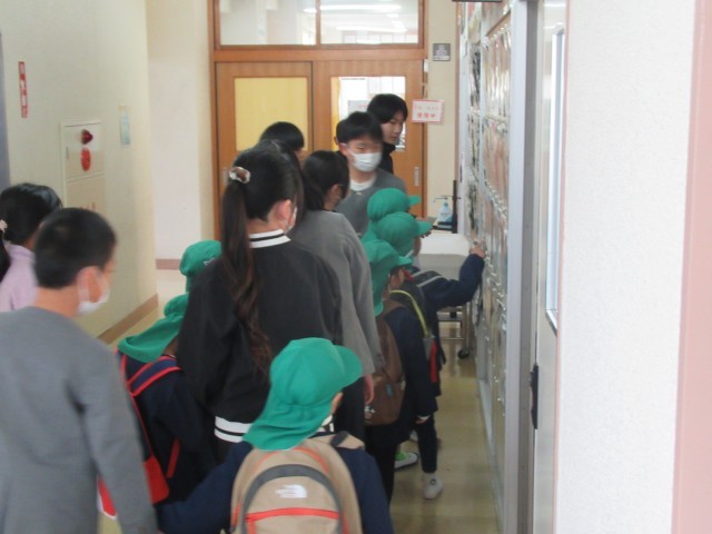 5年生がやさしく園児の手を引いて、所々説明をしながら案内をしている様子が見られ、頼もしい5年生だなあと感心しました。