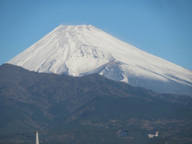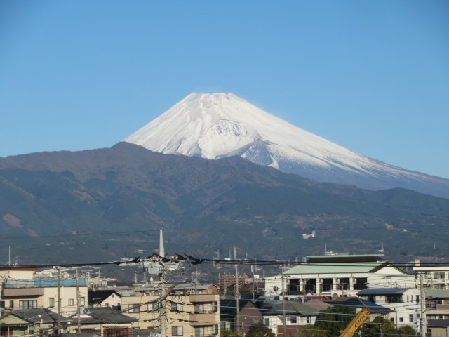 今日の朝は冷えましたが、雲一つなく、澄んだ空気の中に雪化粧をした富士山を見ることができました。日中は暖かい日が多く、先週は富士山も雪が少ししか見られませんでしたが、土曜日から日曜日にかけての雨が、富士山には雪を降らしたようですね。