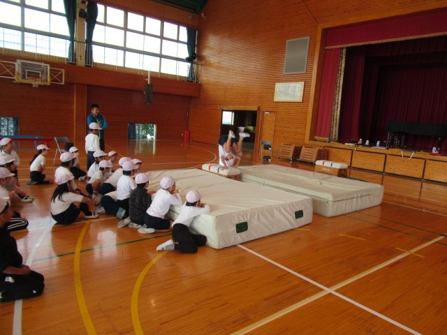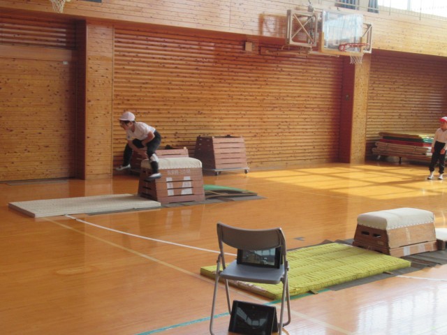 3年生の体育の授業の様子です。跳び箱やマットの運動をサーキット形式で行っていました。子供たちそれぞれが今日のめあてをもって、楽しみながら取り組んでいる姿が印象的でした。今どきの体育だなあと思ったのは、練習場所に自分のタブレットを設置して、「タイムシフトカメラ」を使用して5秒前の自分の動きを確認しているところです。技をさらに良くするために、自分の様子を知ることは大事ですね。