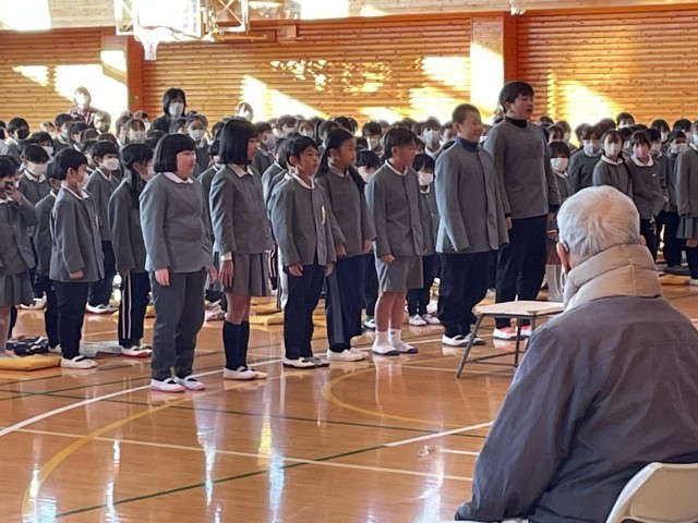 会では支えてくださっている皆様を紹介した後、日頃の感謝を込めて、代表児童からの言葉と全校児童による「ありがとうの花」の合唱を送りました。代表児童の言葉は、「いつも通学路で見守ってくださっていて、低学年の子が転んでけがをしてしまっても助けてくれてありがとうございます。」「賞状に書かれた自分の名前が手書きで、とても嬉しかったです。」など、子供たちが感じたままの感謝を伝えることができたと思います。全校の合唱も、インフルエンザ対策でマスクを着けたままの合唱でしたが、心を込めて歌うことができたと思います。