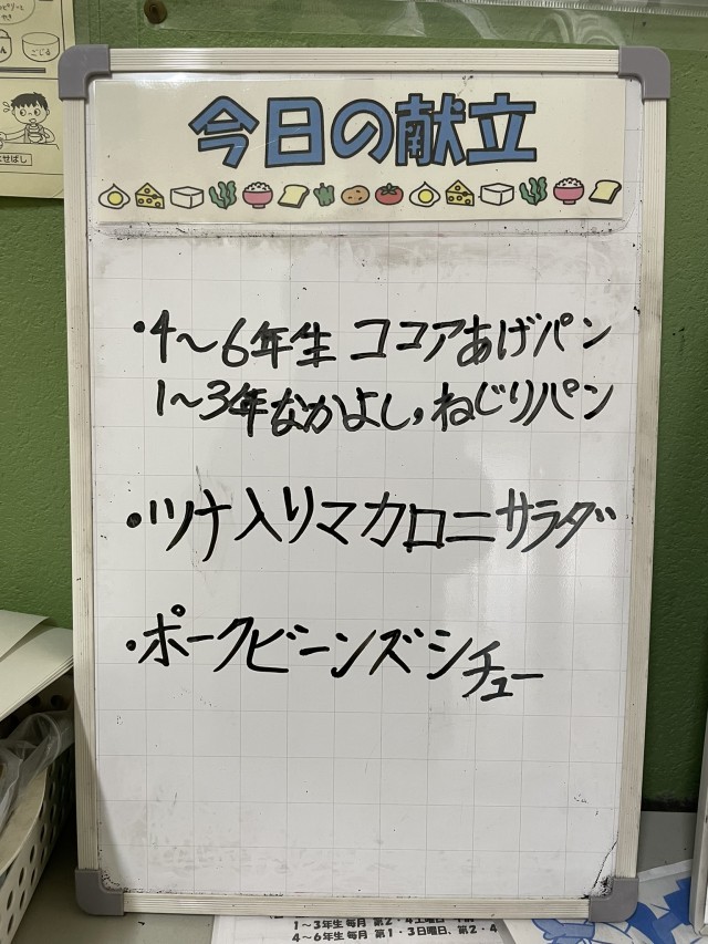 なお、本日は函南町の雪の影響で、牛乳の配送ができず、給食に牛乳の提供がありませんでした。